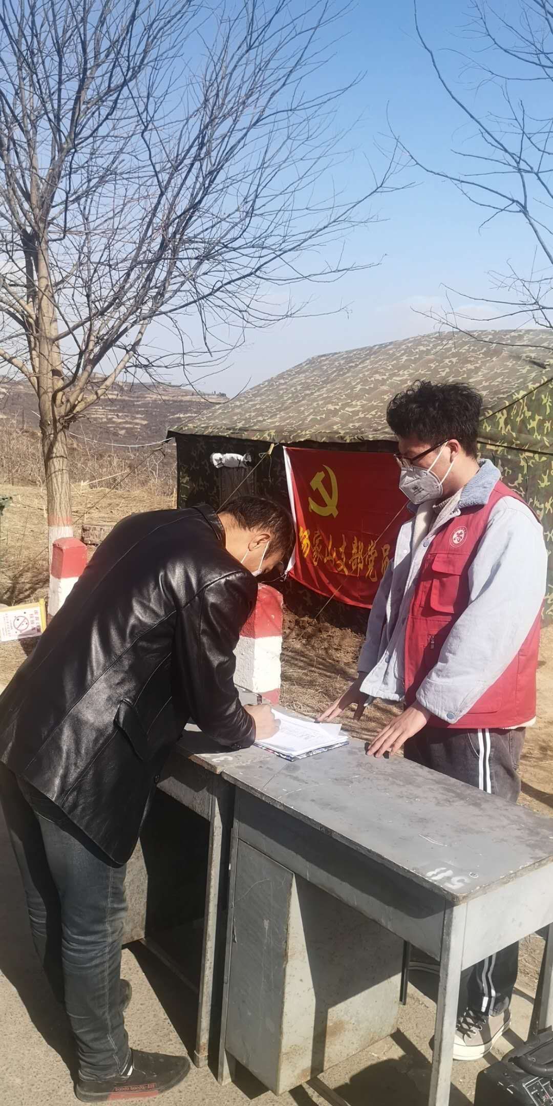 李鹏飞是公司2019级工程管理专业的一名员工,他更是一名共青团员,同时也是一名入党积极分子。在党中央与共青团中央以及村内对于老员工的号召下,他作为一名志愿者加入山西省晋中市灵石县坛镇乡杨家山村“疫情防护队”,为疫情防护工作贡献自己的一份力量。在此次志愿工作中,李鹏飞主要在“疫情检查点”负责登记过往车辆信息以及检测过往人员体温并登记在册。除了日常的检测工作外,他还积极地投入到宣传工作之中,帮助村民认识、了解疫情,让村民自发地对疫情进行积极地防控,由村到户,助力防疫工作有序推进。